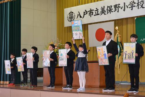 本年度末で閉校する八戸市立美保野小(工藤正道校長)で8日、閉校記念式典が開かれた。在校生8人と教職員、卒業生ら計約140人が68年間の歩みを振り返りながら、新たな一歩への決意を新たにした。[br] 同校は市立町畑小美保野分校として1951年に誕生し、55年に美保野小中に改称。2012年度末で美保野中が閉校し、単独校になった。[br] しかし、児童の減少や、20年度からの新学習指導要領の完全実施などを踏まえ、今年4月から市立町畑小に統合されることが決まっている。これまで計424人の卒業生を送り出した。[br] 式典では工藤校長が「全校児童8人でスタートした本年度は、『うれしいことを伝え合う』を学校目標に設定し、美保野小最後の児童として成長してきた。地域の方々には温かく見守っていただき感謝する」とあいさつした。[br] その後、児童が「ふるさとの詩」の呼び掛けを実施。記念事業として作った「みほのかるた」を紹介しながら、「美保野小で過ごした思い出を一生忘れません」などと大きな声で発表した。みほのかるたを紹介しながら思い出を発表する児童