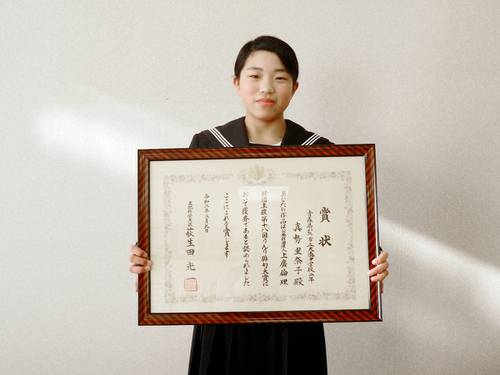 真勢さんは、受賞を聞いた母親が、今までに見たことがないような笑顔で喜んで祝福してくれたことが印象的だった―とし、「俳句に限らず、これからもさまざまな創作活動を続けていきたい」と意欲を示した。
