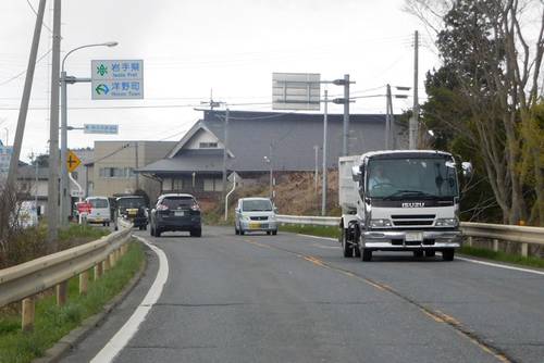 青森県と岩手県をつなぐ国道45号。県境を越えて車が行き交う=22日