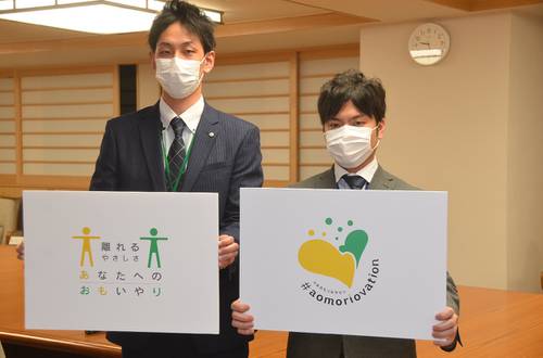 青森県が作成したソーシャルディスタンシングを呼び掛けるロゴマーク=14日、県庁