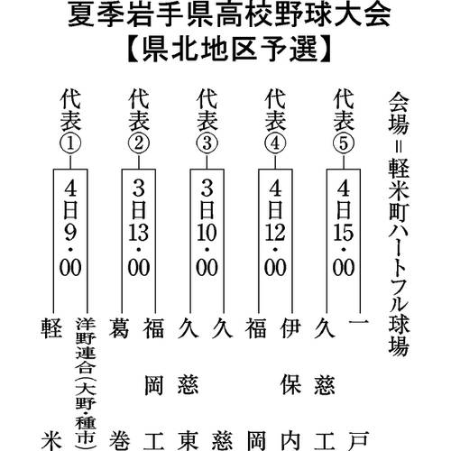 7月3、4日“一発勝負”の代表決定戦/夏季岩手県高校野球・県北地区予選 2020年6月15日 22:30 新型コロナウイルスの影響で中止となった全国高校野球選手権岩手大会の代替大会となる「夏季岩手県高校野球大会」県北地区予選の組み合わせが15日、決まった。県大会出場5枠をめぐって、参加10チームが7月3、4日、軽米町ハートフル球場で“一発勝負”.....有料会員に登録すれば記事全文をお読みになれます。デーリー東北のご購読者は無料で会員登録できます。ログインの方はこちら新規会員登録の方はこちら お気に入り登録 お気に入りリスト