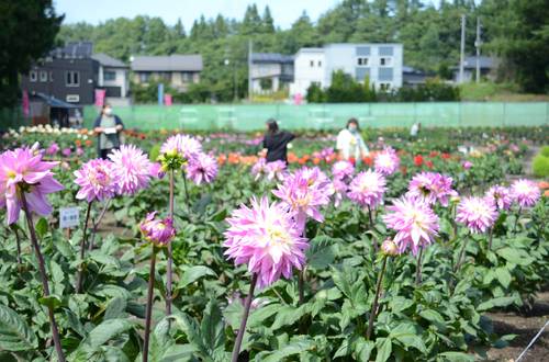 ひばり野ダリア園(五戸町) 一番花が見頃
