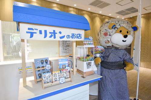 ○…八戸市城下1丁目のデーリー東北新聞社本社1階に26日、同社マスコットキャラクター「デリオン」のグッズを販売する屋台「デリオンショップ」がお目見えした=写真=。[br] ○…販売するのは特製クリアファイルのほか、新発売の「デリオン学習帳」、カラフルなマルチシール3種、缶バッジ10種の計4アイテムで、いずれも100円(税込み)。缶バッジはカプセル販売機(ガチャガチャ)から購入でき、どの種類が出るかはお楽しみだ。[br] ○…30日には同市中心街で開催される「はちのへホコテン」に出店。ガチャガチャのカプセルを購入して“当たり”が出ると、グッズ全4種類がもらえるホコテン限定企画も実施する。[br] ○…今後、屋台はスポーツやイベント会場に出店する予定。「色んなチームとのコラボグッズも登場するよ!」(デリオン)