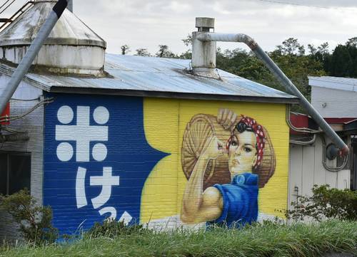 Free精米所に「米けっ!」の名物壁画 ネットで話題、ファン訪問も/七戸