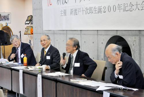 ミニフォーラムで新渡戸十次郎の功績について語り合う参加者