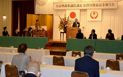 大島理森衆院議長の在任日数最長を祝った会合=20日、八戸市内