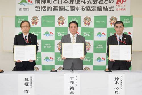 南部町と日本郵便は2日、地域の安全や経済活性化などに関する包括連携協定を締結した。同社が青森県内の自治体と同様の協定を結ぶのは31例目となる。 協定の対象となるのは、町内の配達を統括する八戸西郵便局と、福地、名川、上名久井、三戸駅前、諏訪平.....