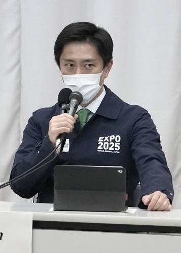 大阪府の新型コロナウイルス対策本部会議で発言する吉村洋文知事=7日午後、大阪市