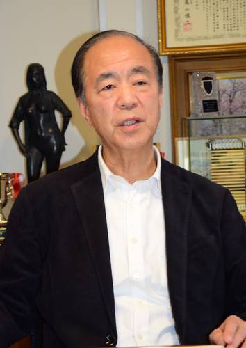 陸奥湊駅前地区の再整備構想の意義などについて語る駒井庄三郎会長=5月上旬、八戸市