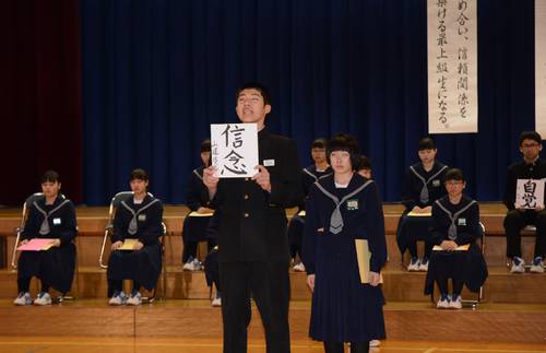 階上町立道仏中(小野榮悦校長)は7日、同校体育館で立志式を...