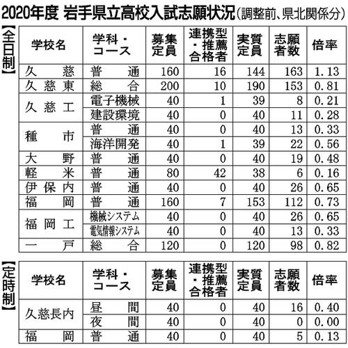 岩手県教委は13日、2020年度県立高校入試の志願者数(調...