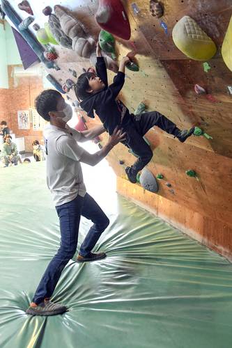 階上でクライミング教室 子どもたちが競技の魅力触れる