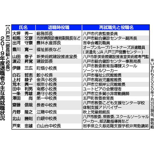 青森県教委は28日、2019年度に退職した教職員の再就職状...
